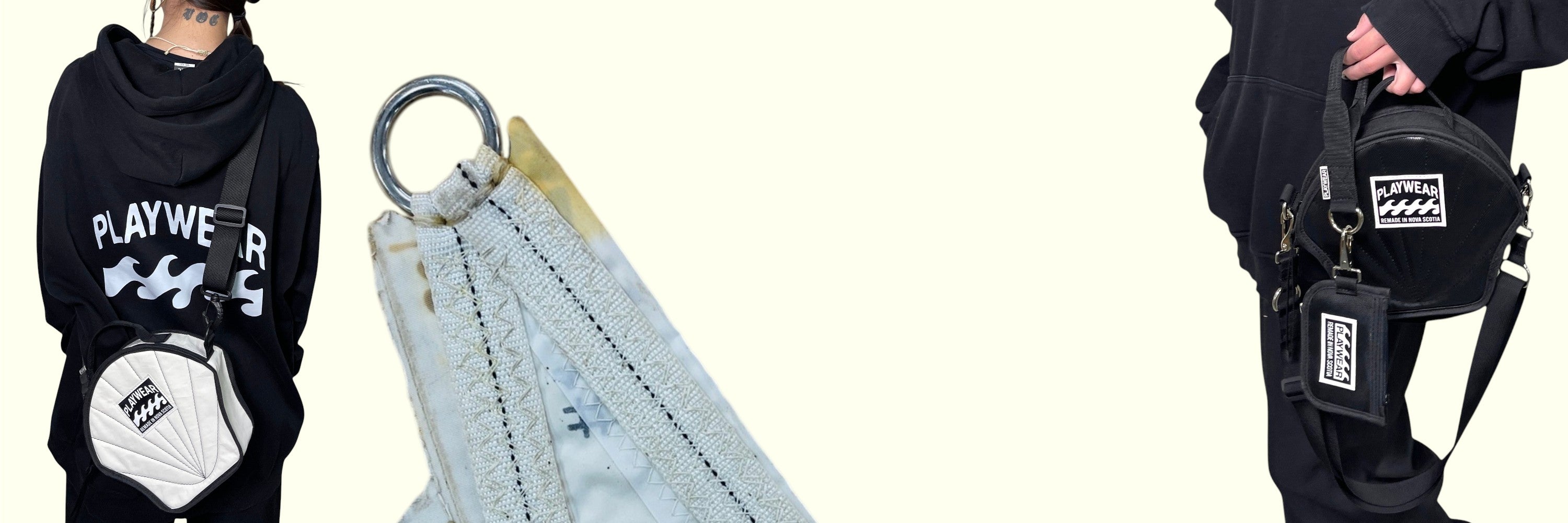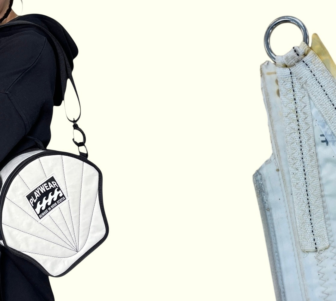 Reclaimed sails, marine textiles, and other end of life materials.